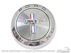 1966 Fuel Cap, authentic Concours Mustang Gas Caps. These caps also feature a security cable on back to prevent theft. Officially licensed by Ford.