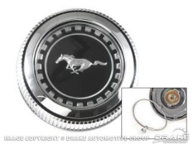 1971-73 Mustang Gas Cap with a security cable! This is the vented style cap that fits all vehicles. Unlike the original gas cap designed by Ford, our new design features a security cable to prevent theft or loss. This is the cap Ford should have designed!
