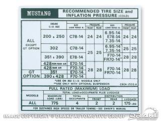 Tire Pressure Decal (Early 1969)